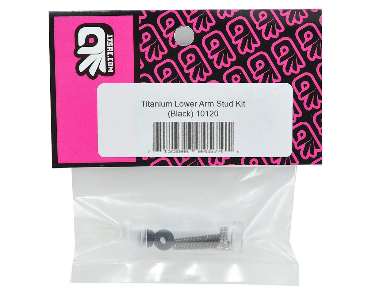 The 175RC Billet machine Grade 5 Titanium Lower arm Stud kit is a great upgrade for your 2wd truck or buggy. This option is not only super light but also increases strength in your rear arms because you are not repeatedly threading a screw in and out when removing your shocks. Pick your favorite anodized color.