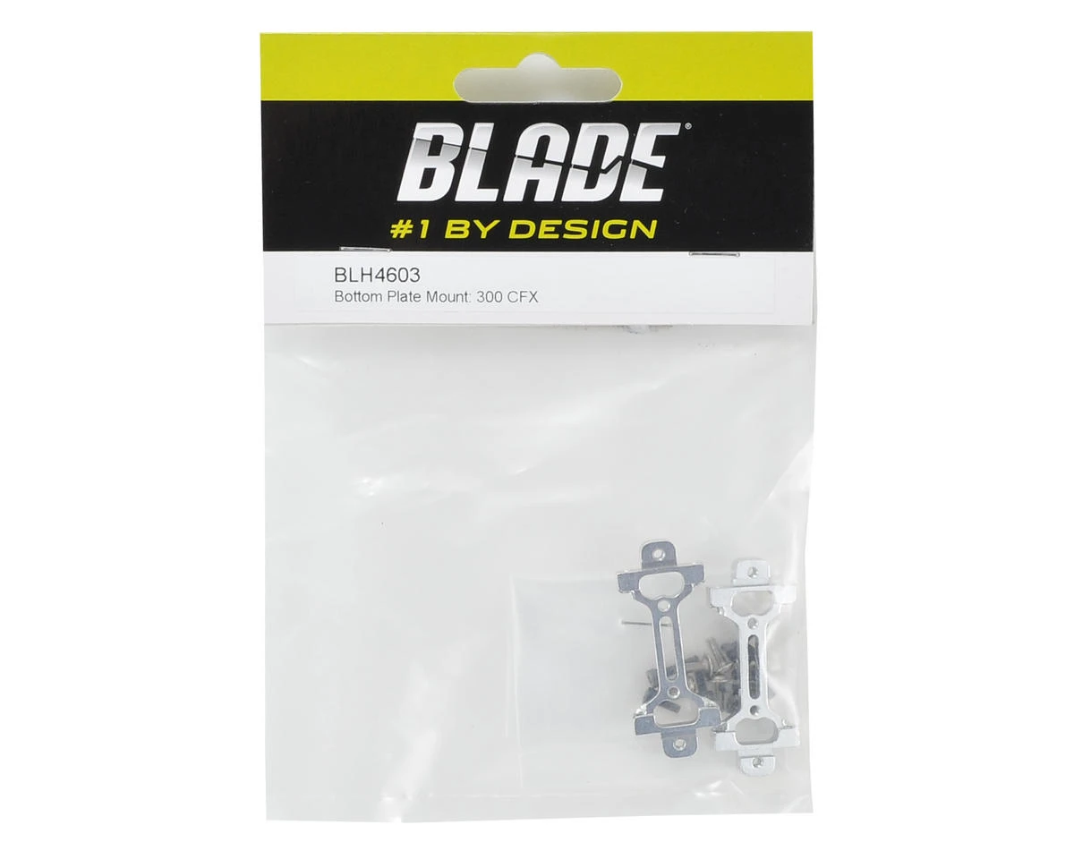This is a replacement Blade Bottom Plate Mount Set for the Blade 300 CFX. Package includes two bottom plate mounts and replacement hardware.