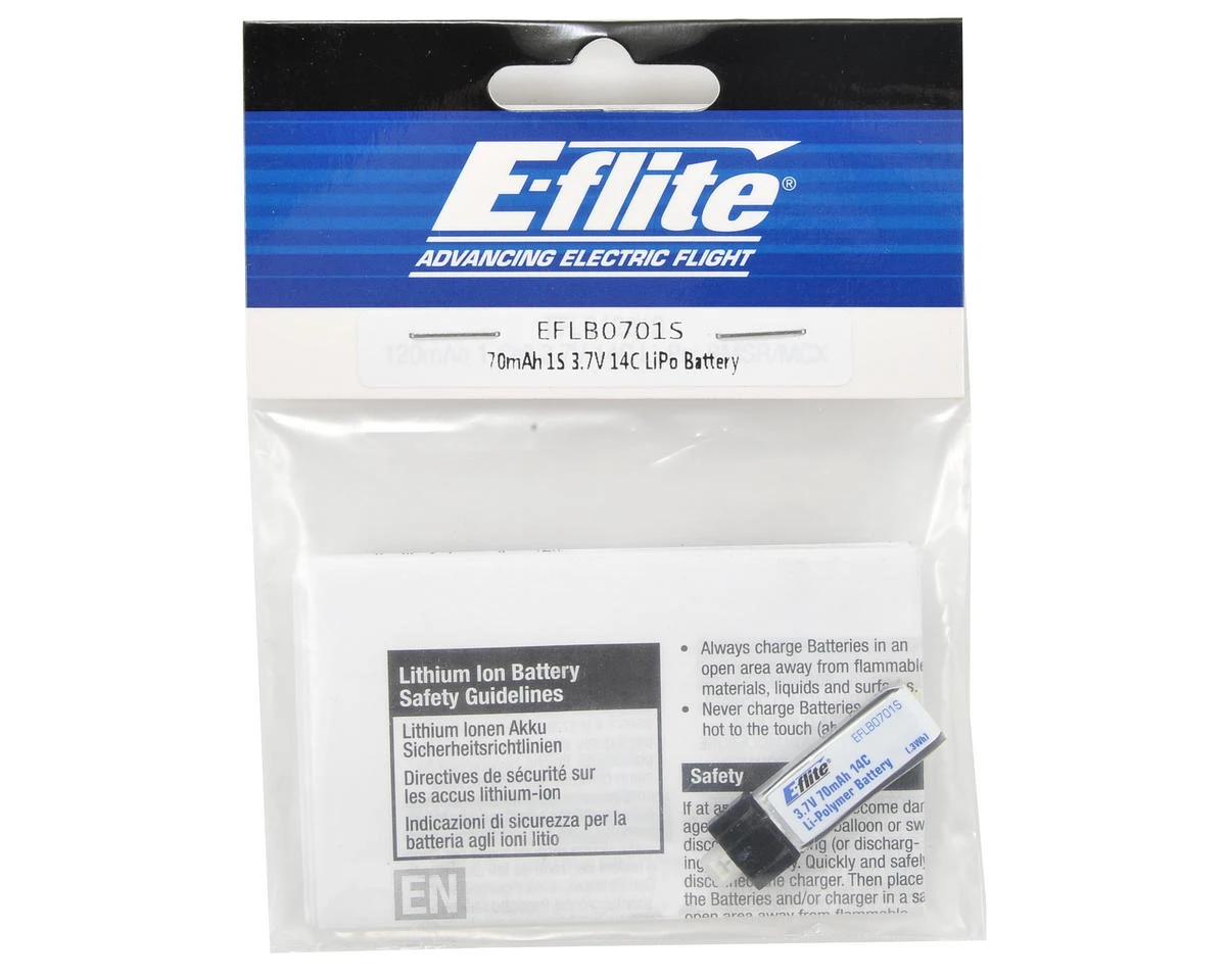 This is a Blade 70mAh 1 cell 3.7 volt 14c lithium polymer battery intended for use with the Blade Scout CX helicopter.