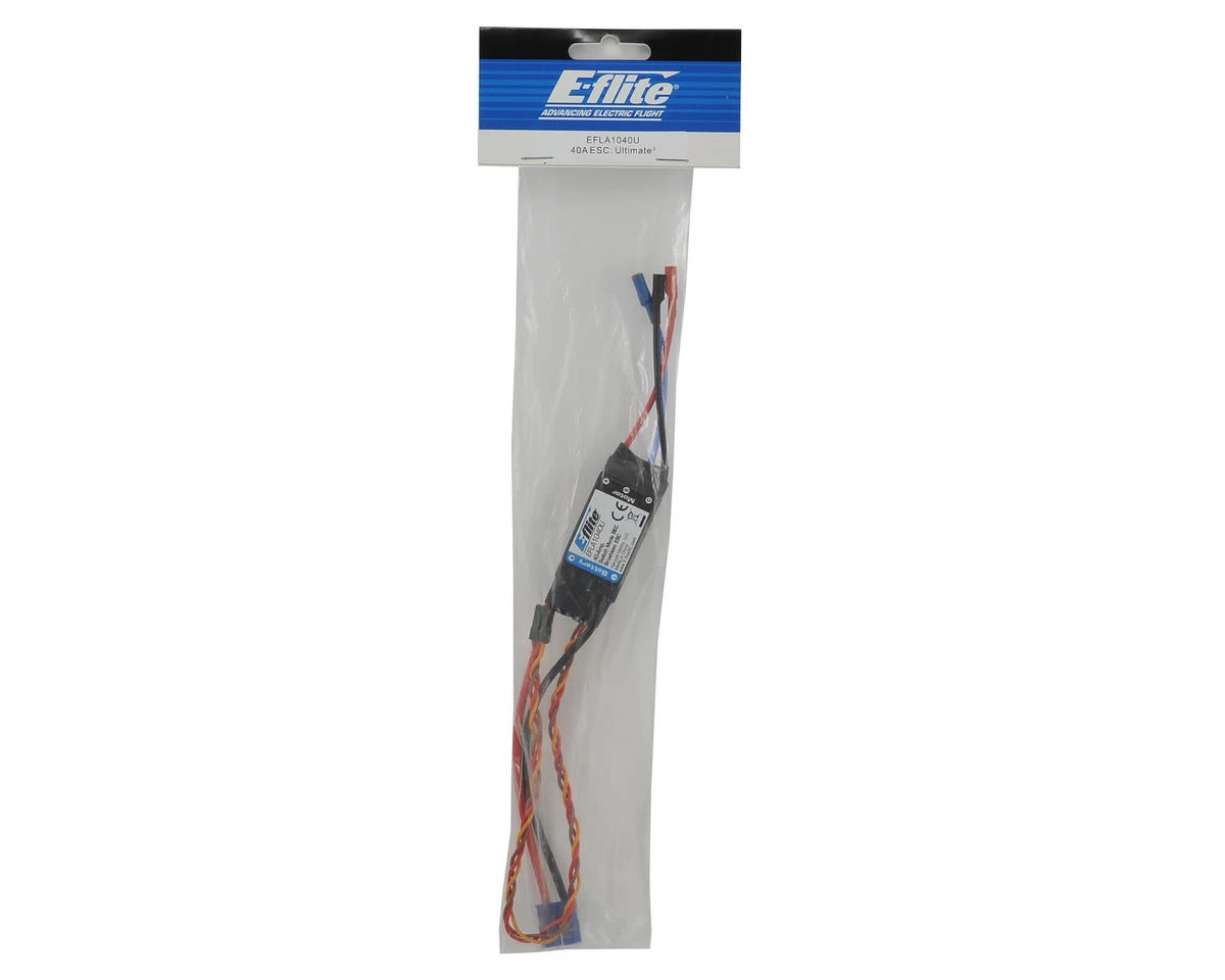 E-flite Ultimate 2 40A ESC. Package includes one E-flite 40 Amp switch mode BEC ESC with factory installed bullet connectors for the motor and an EC3 battery connector.