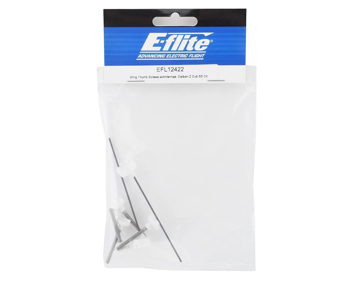 This is a pair of replacement pack of E-Flite Wing Screws with Antennas, intended for use with the Carbon-Z Cub SS.