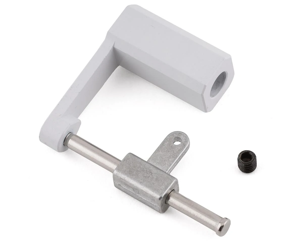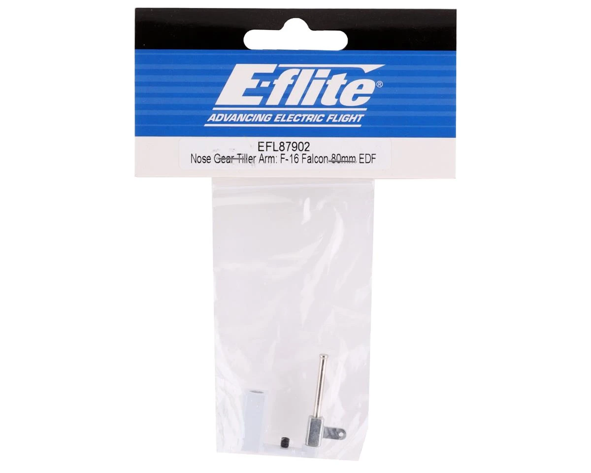 E-flite F-16 80mm Falcon Nose Gear Tiller Arm. This replacement tiller arm is intended for the E-Flite F-16 80mm. Package includes one assembled tiller arm and one grub screw.