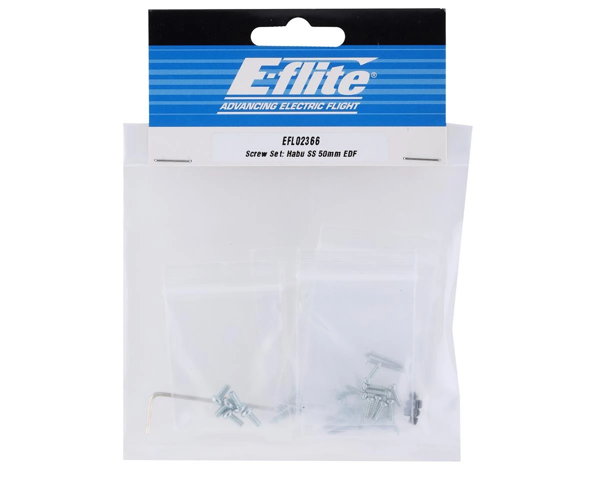 E-flite Habu SS 50mm Screw Set. This is a replacement intended for the Habu SS 50mm aircraft. Package includes all screws used on the Habu SS 50mm and one allen wrench. Â
