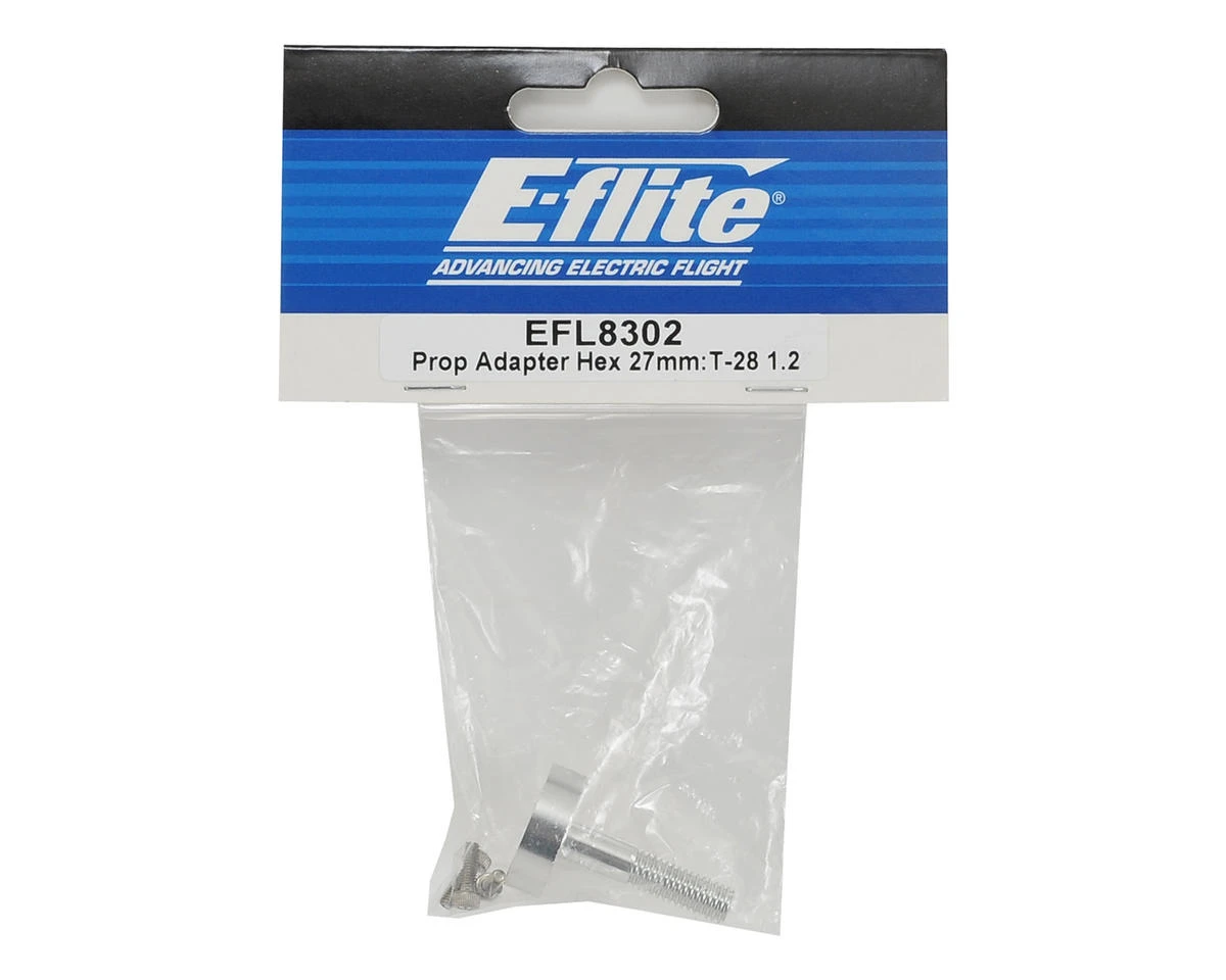 Replacement E-flite T-28 Trojan 1.2 27mm Hex Prop Adapter. Package includes prop adapter and hardware.