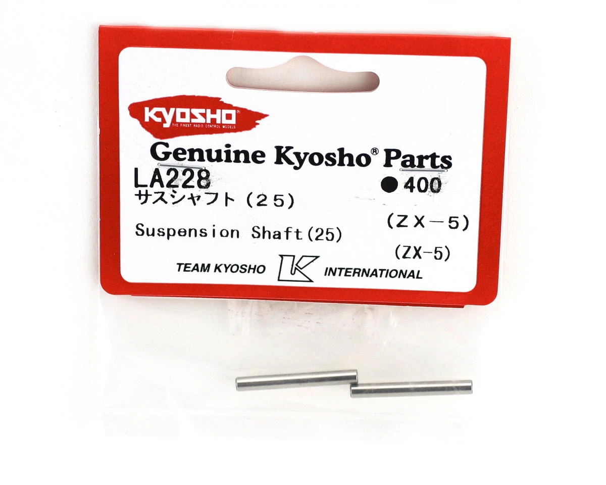 This is a pack of two replacement Kyosho Front Outer Suspension Shafts, and are intended for use with the Kyosho line of 1/10 scale electric vehicles. These are the small hinge pin suspension shafts that are used to attach the front steering uprights to the front of the buggy.