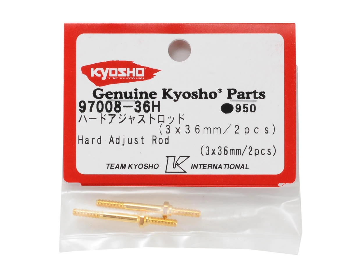 This is a set of two replacement 3x36mm Steering Servo Adjustment Rods, intended for use with the Kyosho MP9.