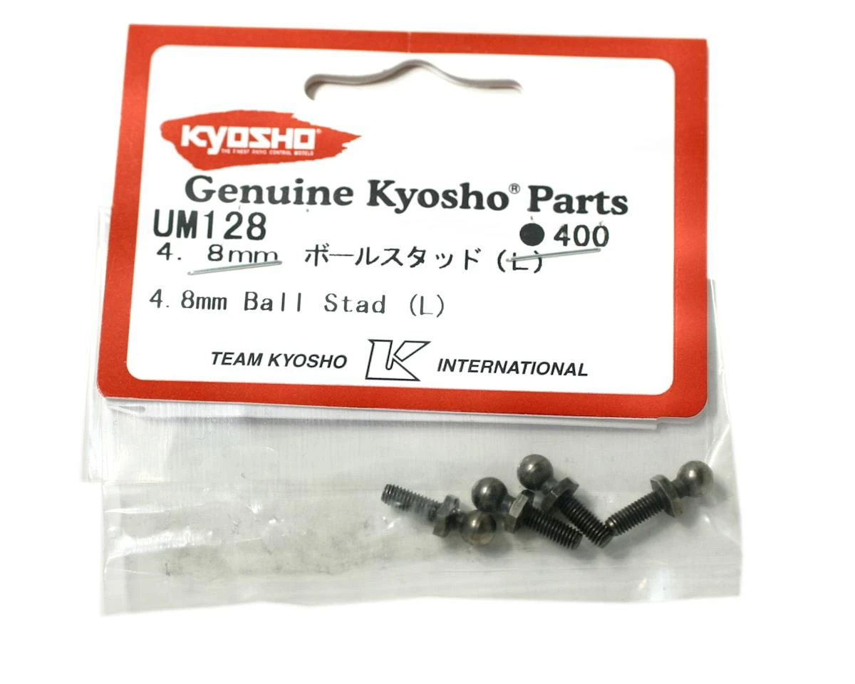 This is a pack of four replacement 4.8mm long ball studs Kyosho trucks and buggies. These are used on the Kyosho Lazer ZX-5 buggy for the rear hub camber links.