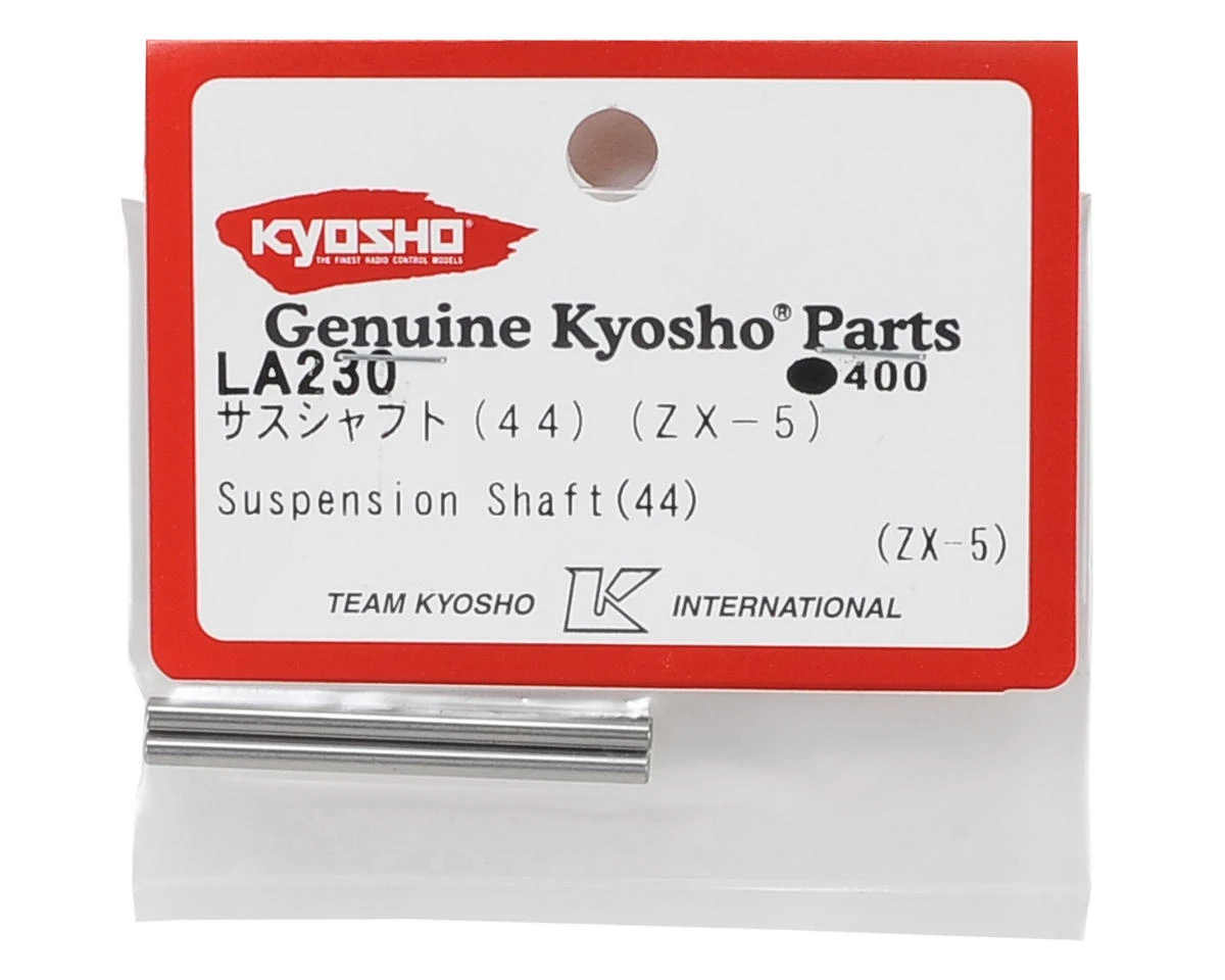 This is a replacement Kyosho 44mm Inner Suspension Shaft Set, and is intended for use with the Kyosho Ultima RB6 and Lazer ZX-5 1/10 scale buggies. These shafts are used in the rear inner position on the RB6 and the front and rear inner position on the ZX-5. These pins attach the arms to the differential bulkheads.