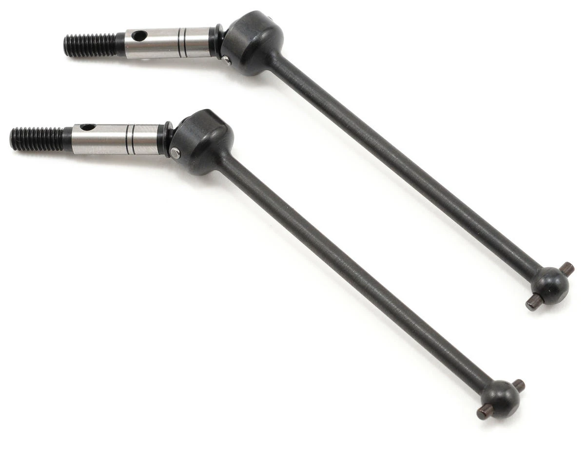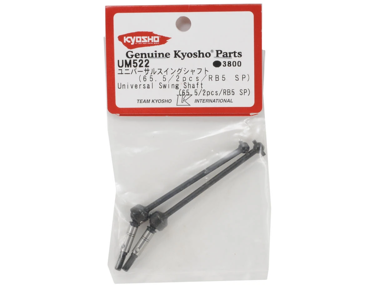This is a set of two Kyosho 65.5mm Universal Swing Shafts, and are intended for use with the Kyosho RB5 SP. Kyosho universal swing shafts (CVD’s) are made from durable, high quality hardened steel. The bones measure 62.5mm from the outdrive pin to the CVD pin. These CVD’s come stock with the Ultima RB5 SP Kit, but are also required for use with the middle suspension arm conversion using KYOUM521 rear arms and KYOUM519 hubs with the standard RB5 or Lazer ZX5.Â
