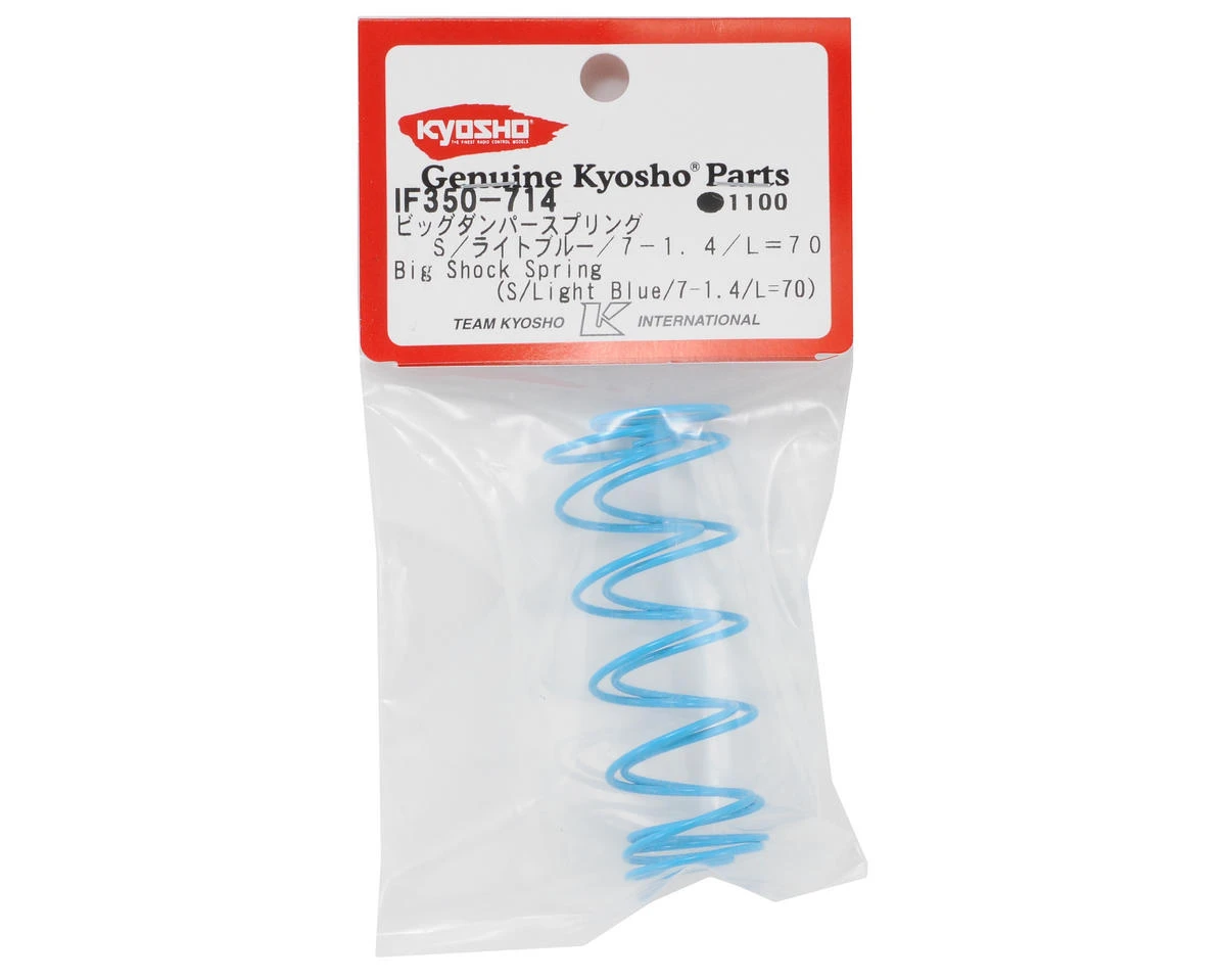 This is a set of optional Kyosho 70mm Big Bore Front Shock Springs, and are intended for use with the Kyosho MP9 1/8 scale buggy. These springs are made with a smaller 1.4 diameter wire, compared to the original springs that used 1.6 wire. These springs also have a lower turn count than the older big bore shock springs, which allows the spring to be lighter than the previous shock springs.