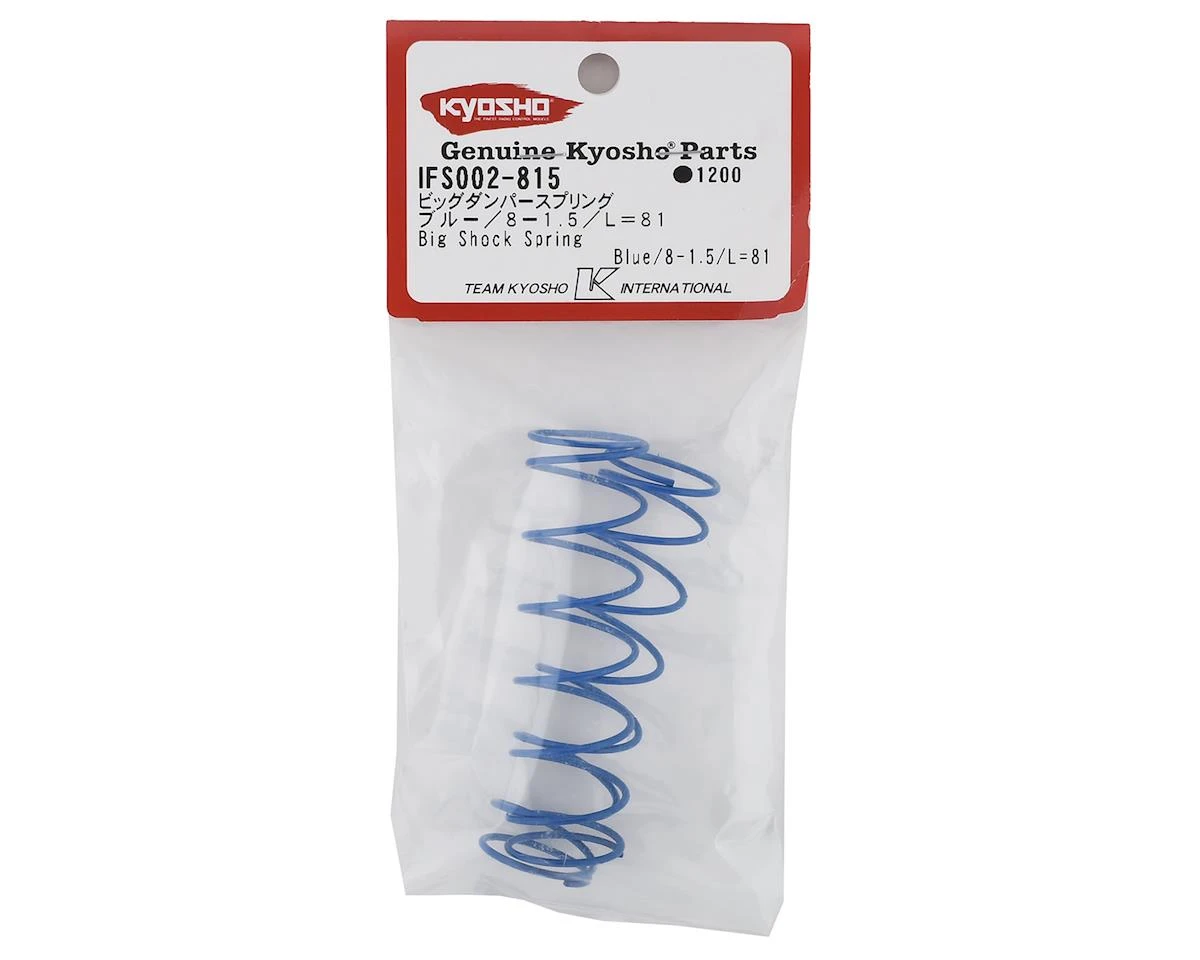 This is a set of optional Kyosho 81mm “Blue” Big Bore Front Shock Springs, and are intended for use with the Kyosho MP9 and MP10 1/8 scale buggies. These 81mm long front springs are recommended for rough tracks, or tracks with big jumps. These must be used with the longer 50mm shock (KYOIF484), and long front shock tower (KYOIFW623). Made with 1.5 diameter wire, these springs are more durable than the standard 1.4mm springs. Blue is the stiffest rate spring in the 1.5 wire 81mm spring lineup.Â
