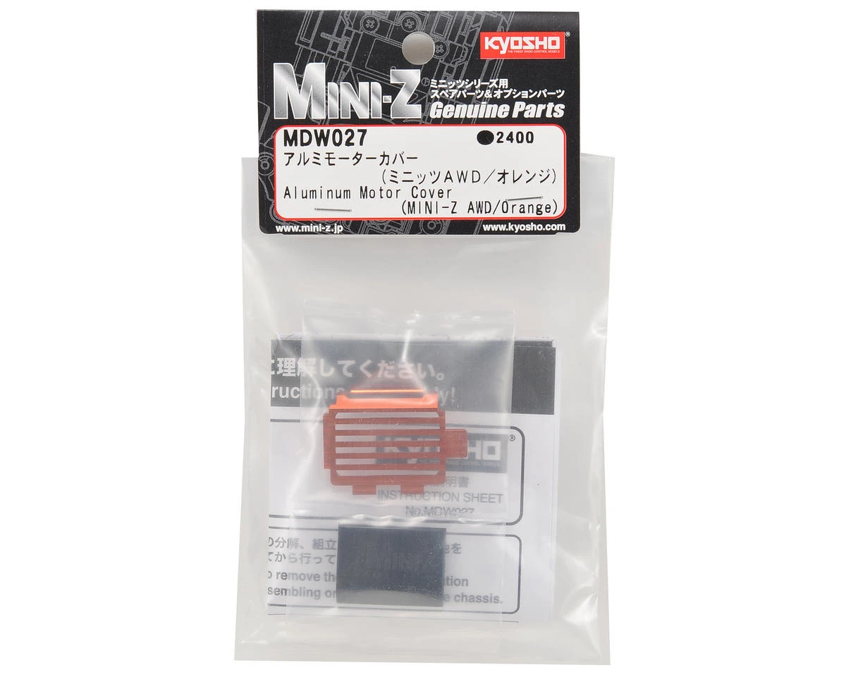 This is an optional Kyosho Aluminum Motor Cover, and is intended for use with the Mini-Z MA-010 and MA-015 AWD vehicles. Package includes an orange anodized motor cover and a plastic airduct.