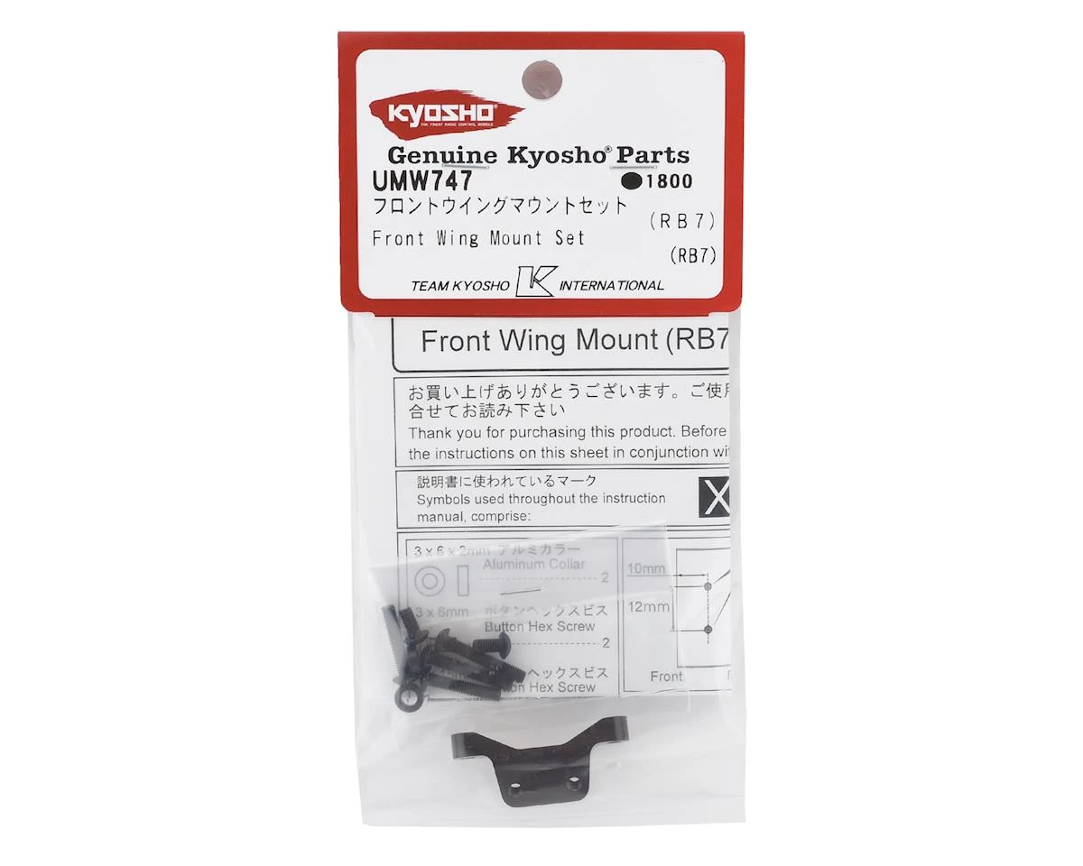 This is an optional Kyosho Front Wing Mount Set for the RB7 2WD Buggy. This aluminum piece is anodized in Gunmetal with included hardware and two matching anodized aluminum spacers.