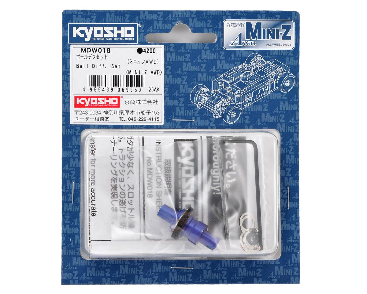 This is an optional Kyosho Ball Differential Set, and is intended for use with the Kyosho Mini-Z MA-010 and MA-015 AWD chassis. This ball differential will provide increased traction, smooth cornering, and stable differential action.