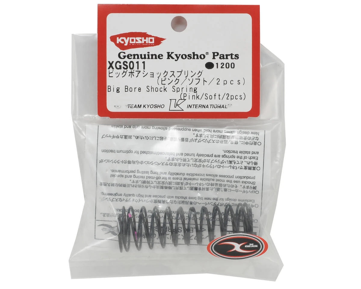 This is a Kyosho Big Bore Rear Shock Spring Set, and is intended for use with the Kyosho Lazer and Ultima buggies that are equipped with big bore shocks. These springs are considered soft rate.