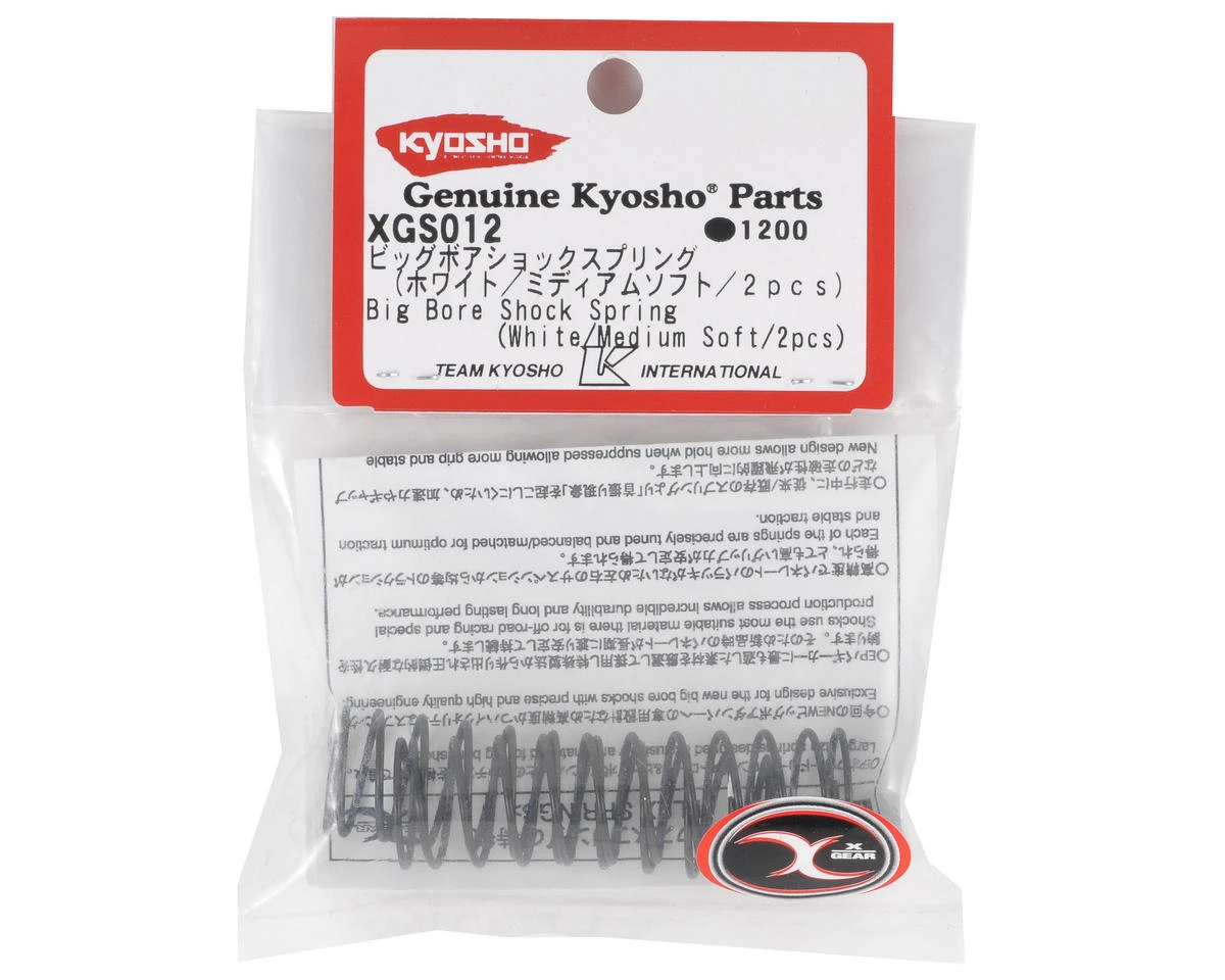 This is a Kyosho Big Bore Rear Shock Spring Set, and is intended for use with the Kyosho Lazer and Ultima buggies that are equipped with big bore shocks. These springs are considered medium soft rate.