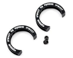 This is an optional Kyosho 5g Front Knuckle Weight Set, and is intended for use with the Kyosho MP9 family of vehicles. These outboard type weights are secured to the steering knuckles with a set screw and add 5 grams of unsprung weight to the outer end of each suspension arm. These weights are said to help improve overall handling and steering response.