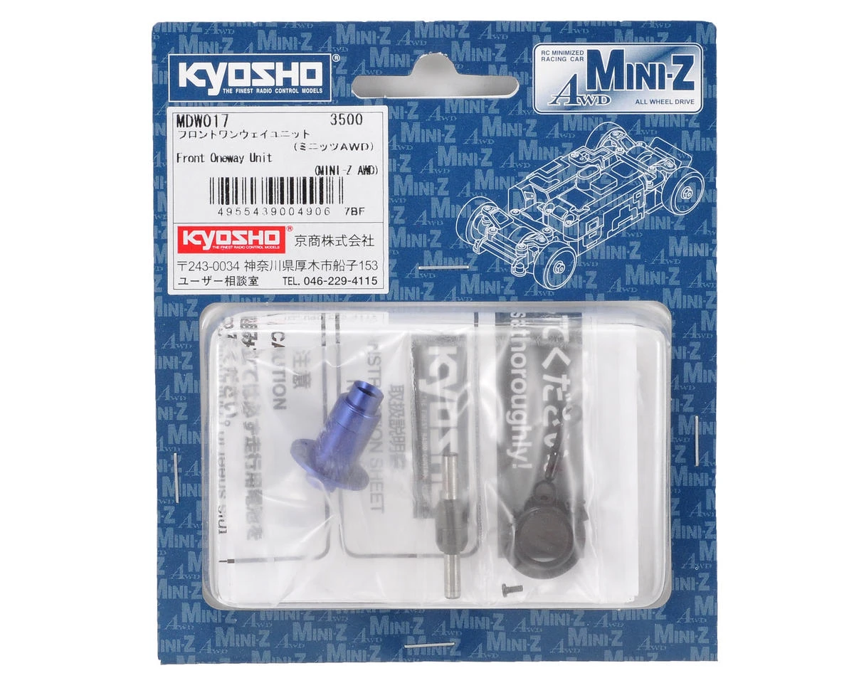 This is an optional Kyosho Front Oneway Unit, and is intended for use with the Kyosho Mini-Z MA-010 and MA-015 AWD chassis. This one way will eliminate front/rear rotational differences in tight corners, providing smooth cornering characteristics making this ideal for technical layouts that demand precise handling.