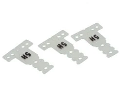 Kyosho FRP 0.5 Hard Rear Suspension Plate. These optional tuning plates are made of Fiber-Reinforced Plastic (FRP) and will help you tune your car for your track conditions. A firmer suspension plate will allow less flex resulting in less chassis roll through corners while a softer plate will allow for more chassis roll. Package includes three optional suspension plates.