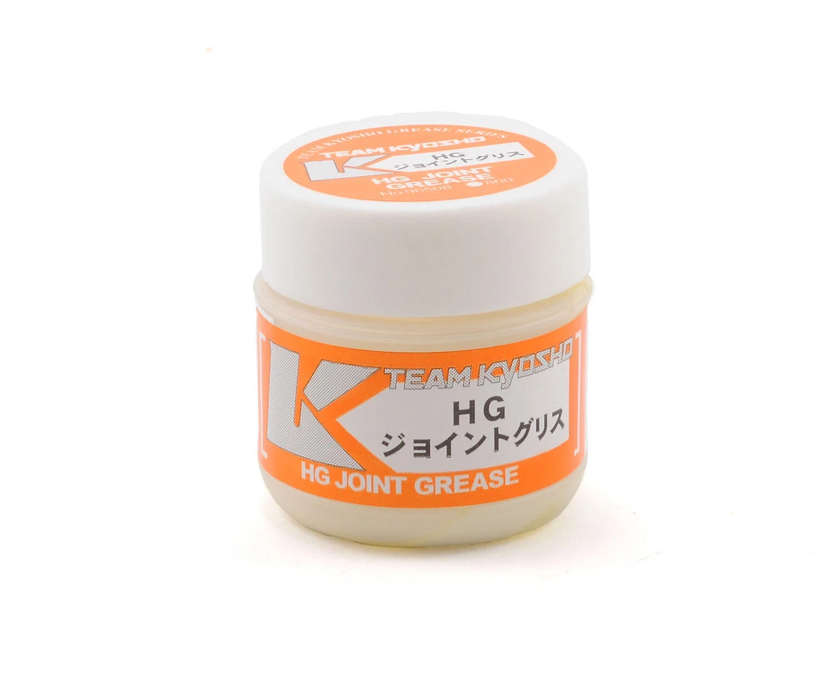 This is a container of Kyosho High Grade Joint Grease, and is intended for use with the Kyosho MP9 family of 1/8 scale buggies. This grease is useful in fast moving, high heat drivetrain parts to prevent excessive wear and heat scoring.