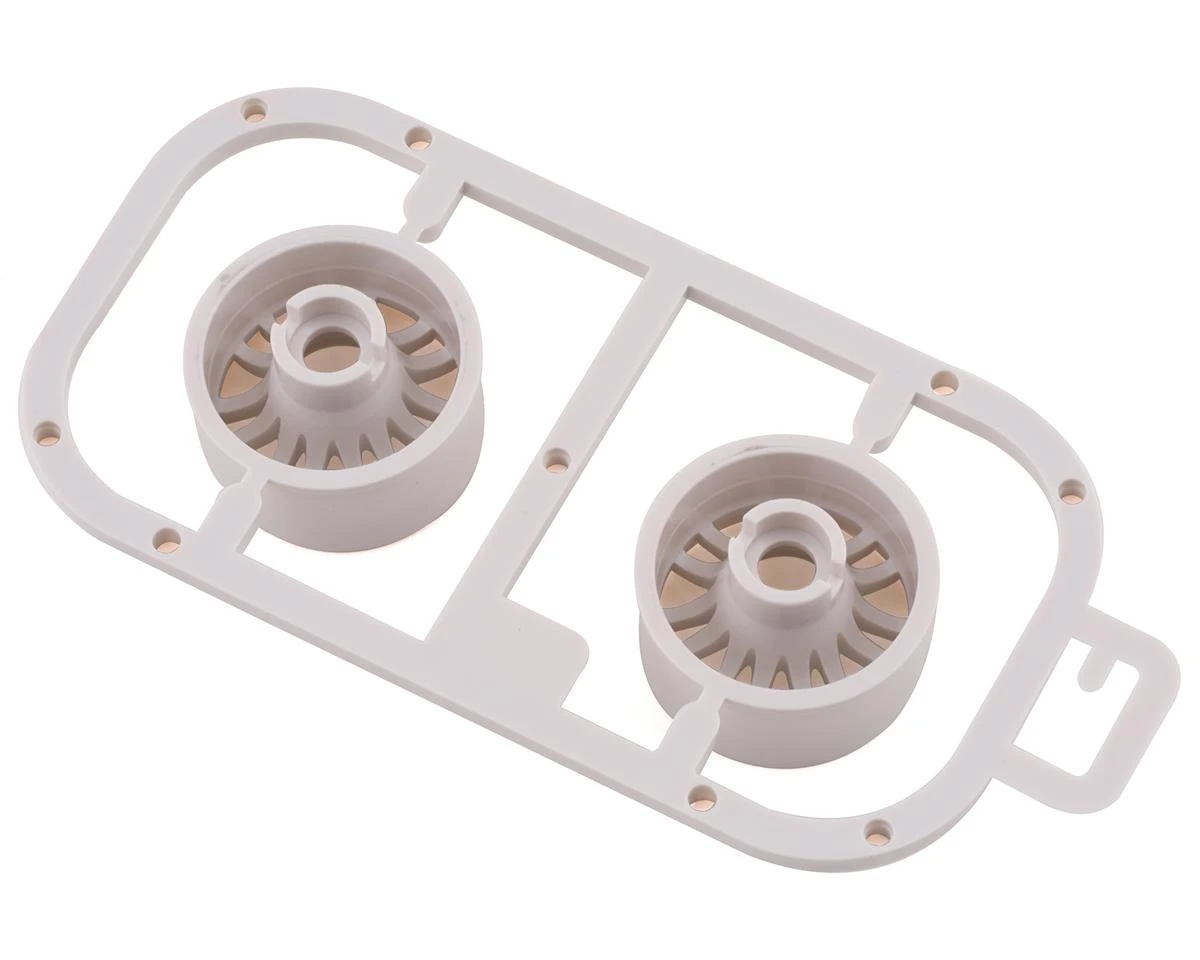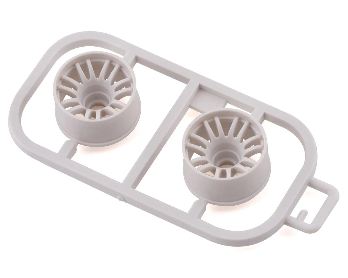 This is a optional set of two Kyosho Mini-Z Rays RE30 Multi Wheel II. These are the optional wide, +3.0 Offset Wheels, and are a great option for tuning Mini-Z models for improved handling, or to suit different bodies. Plus, the bright white plastic is perfect for adding a personalized touch with your prefered color paint.Â