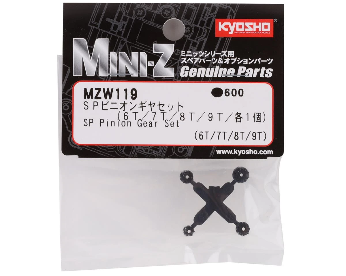The Kyosho Mini-Z SP Pinion Gear Set is an optional pinion gear set with 6T, 7T, 8T and 9T pinion gear options.Â