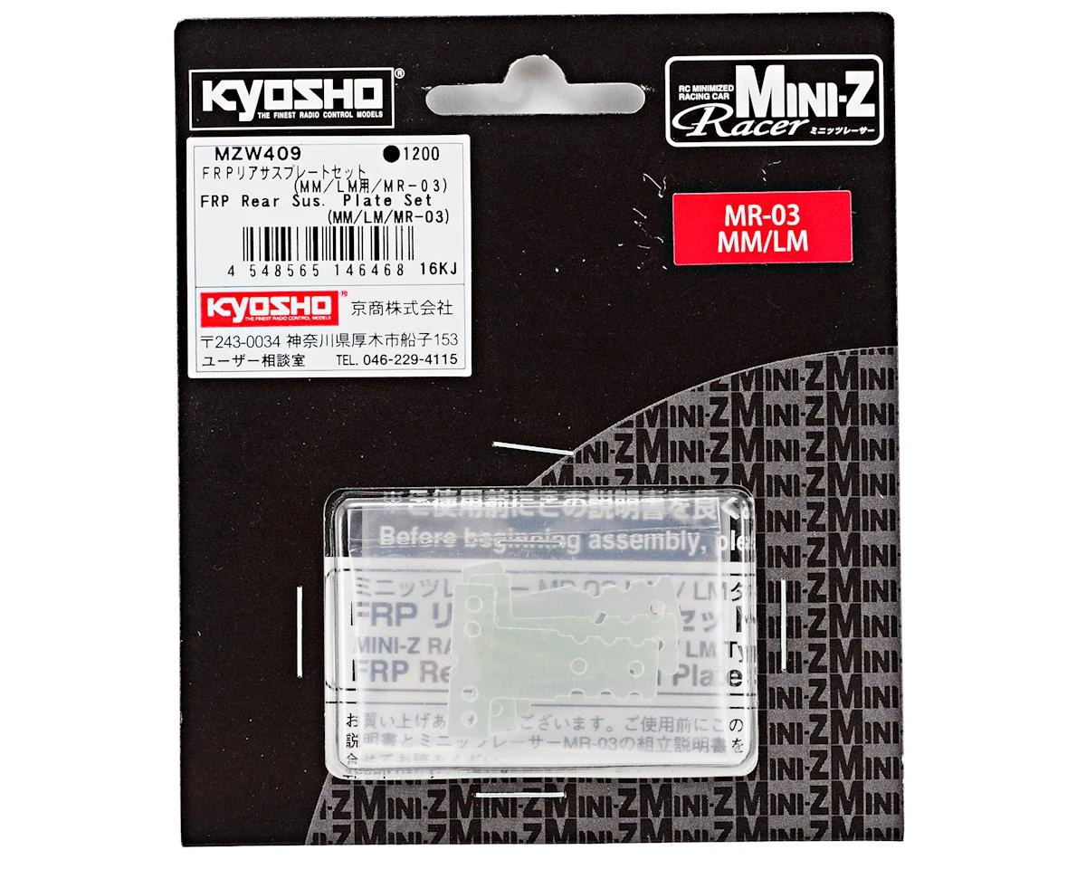 This is an optional Kyosho MM/LM-Type FRP Rear Suspension Plate Set, and is intended for use with the Kyosho Mini-Z MR-03 chassis. This suspension plate set provides increased flex compared to the carbon fiber plates and is ideal for low traction surfaces. Includes three different width plates, each with different levels of rigidity and will allow you to tune the flex of the chassis to suit a variety of track conditions.