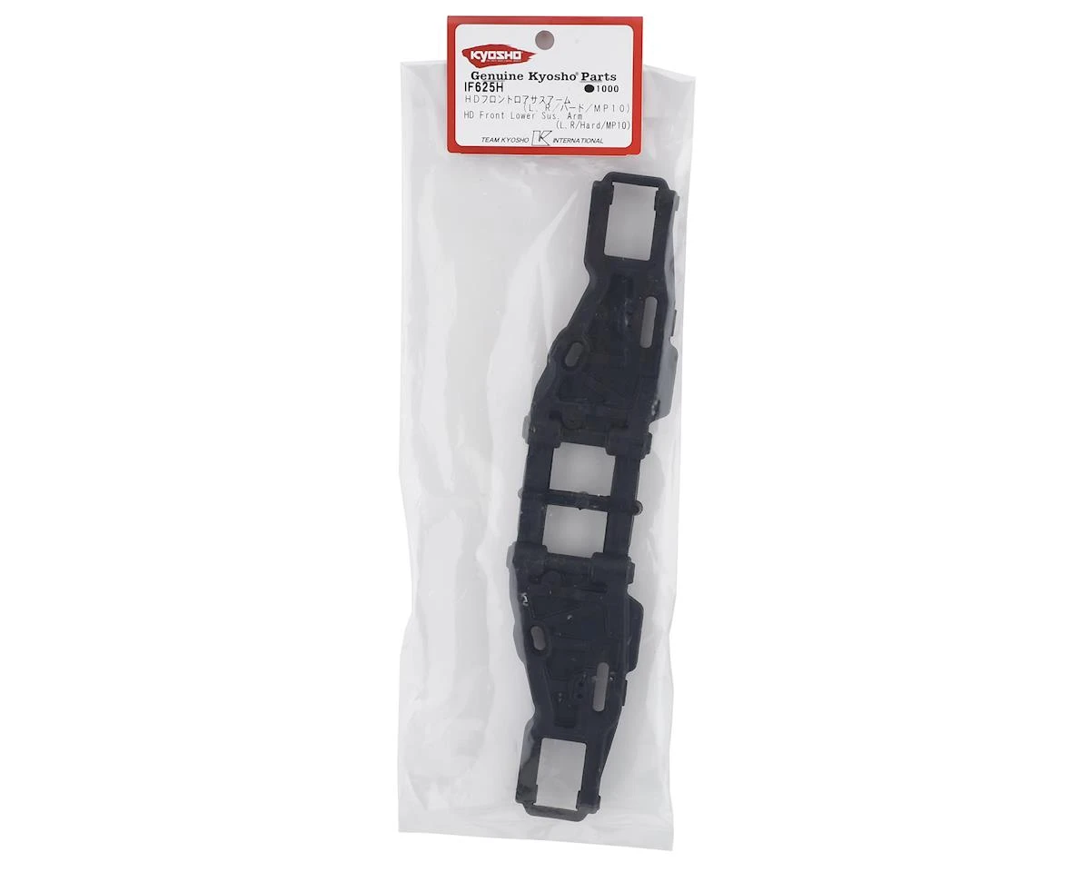 This is an optional Kyosho MP10 HD “Hard” Front Lower Suspension Arm, intended for use with Inferno MP10 kits. This arm is molded from a harder composite than the stock parts, making it better suited to running in warm/hot ambient temperatures where heat can create too much flex when running the stock parts. Package includes one right side arm and one left side arm.Â