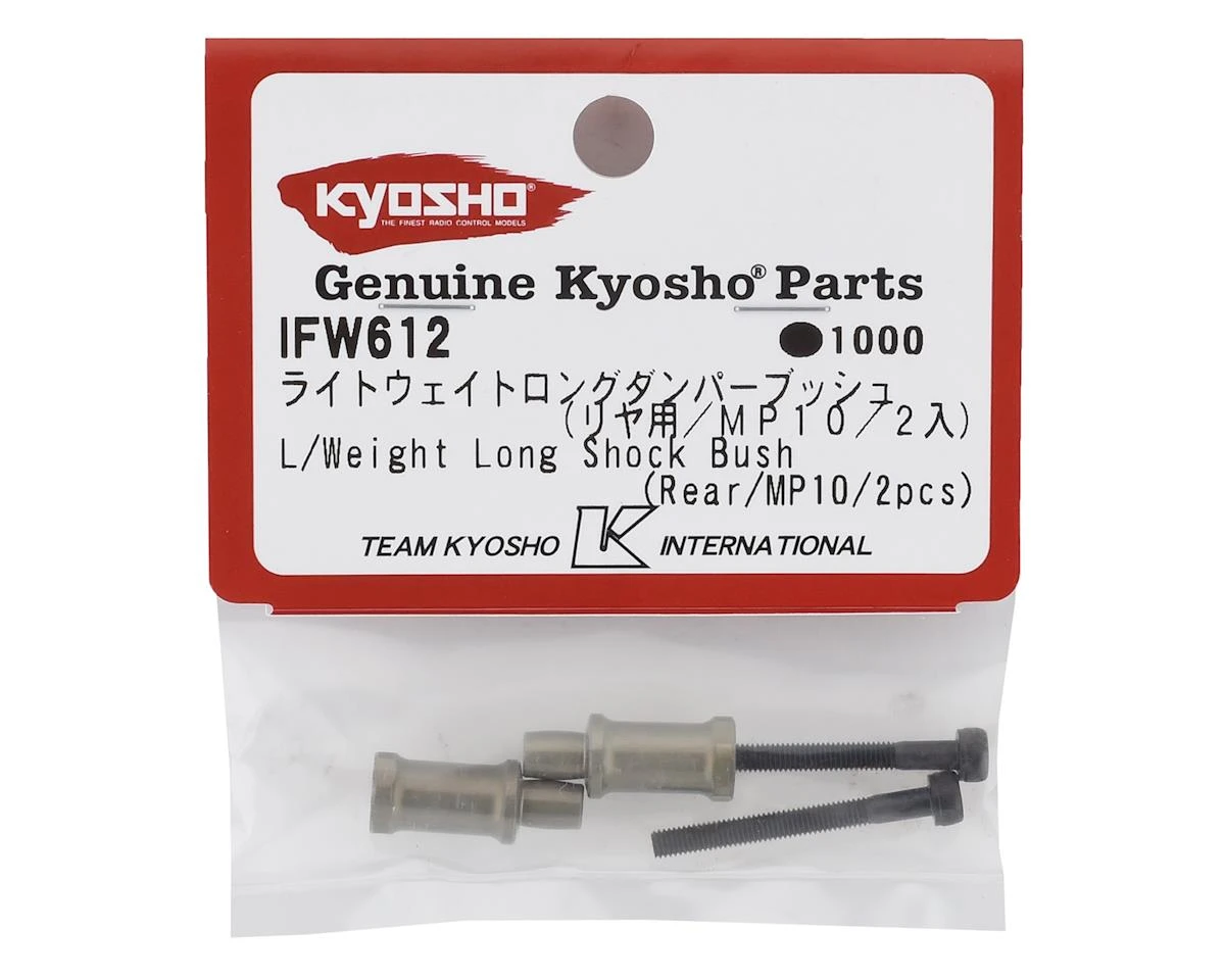 This is an optional set of two Kyosho MP10 Rear Long Light Weight Shock Bushings, intended for use with the Inferno MP9 and MP10 kits. These shock bushings set the sock 3mm to the rear. This angle on the rear shocks improves the shock movement performance drastically and increases traction.