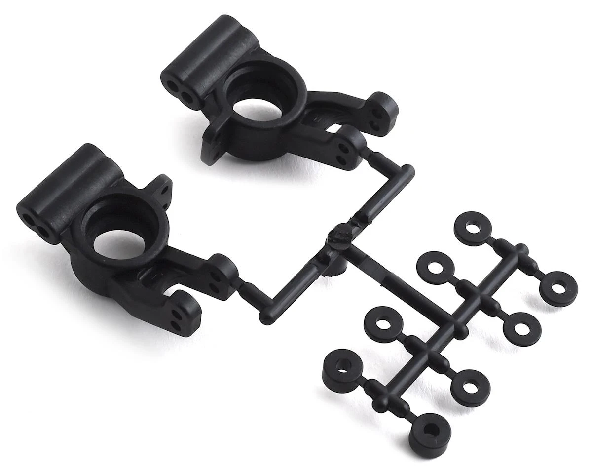 This is a pack of optional Kyosho “Hard” Rear Hub Carriers, compatible with the MP9 series, as well as the GT3 line of vehicles. These are the updated Rear Hub Carriers that have been molded from Kyosho’s Hard composite blend. This set also includes the spacers used for changing the wheelbase settings on the car.