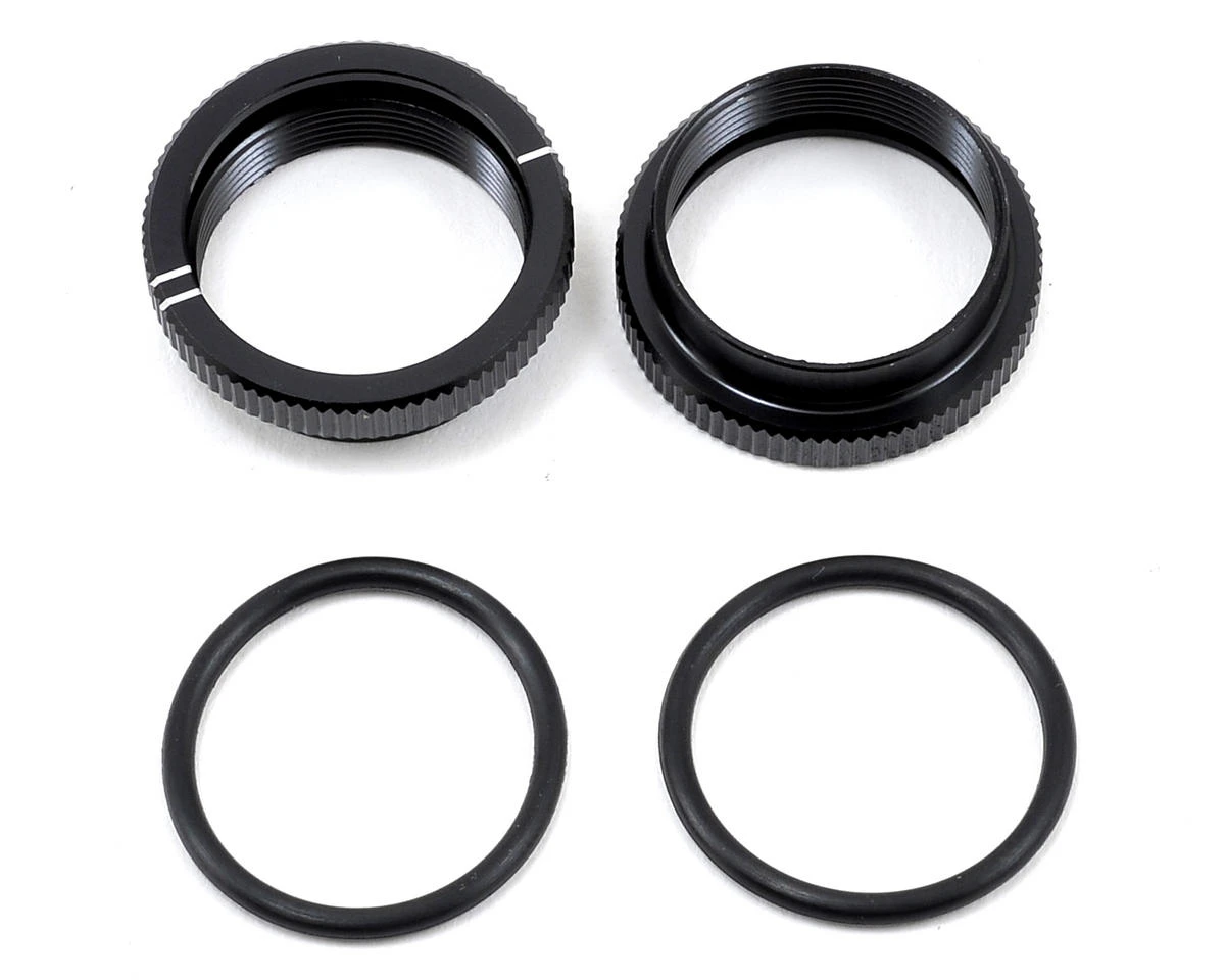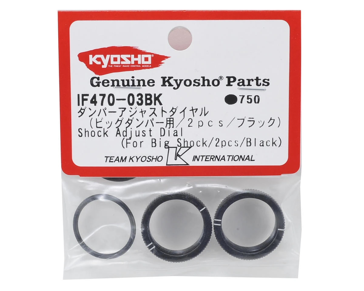 This is a pack of two replacement Kyosho MP9 TKI4 Big Bore Shock Adjust Dial Nuts. These adjusters feature indicators for quick track-side adjustments. Two nut o-rings are also included.