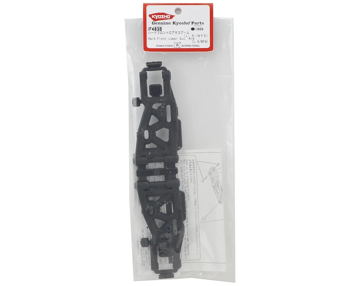 The Kyosho MP9 TKI4 Front Lower Suspension Arm Set is molded from an optional Hard compound that makes them more durable, with less arm flex and better suited to hot weather climates. Package includes left and right side arms.