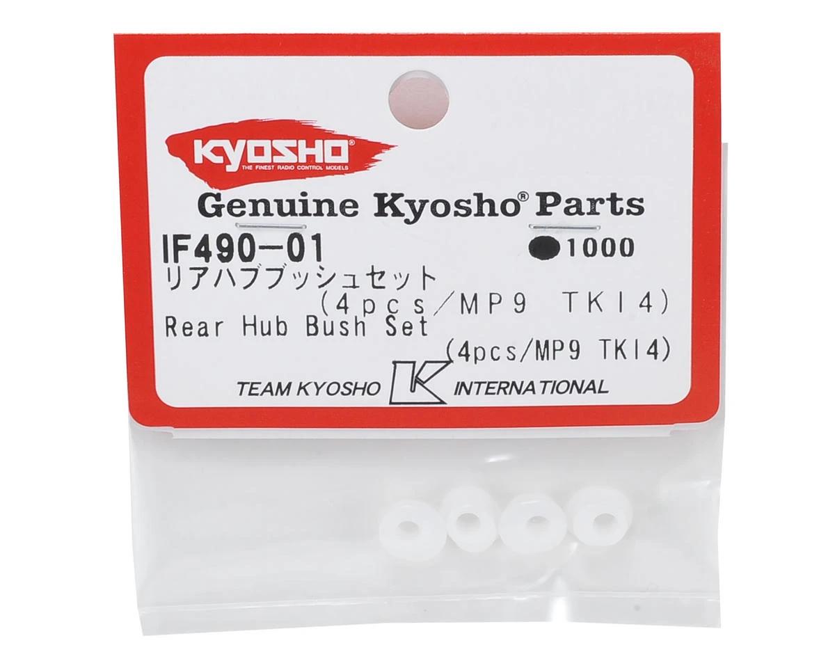 This is a pack of four replacement Kyosho Rear Hub Bushings for the TKI4 rear hubs (KYOIF490). These bushings feature an offset hinge pin hole to adjust roll center.