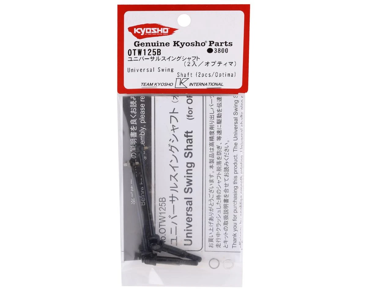 Kyosho Optima Universal Swing Shafts. These optional swing shafts are great for improving drivetrain efficiency in the Kyosho Optima by adding 2mm to each swing shaft. These will also optionally work with the Kyosho Ultima by changing the position of the included collar. Package includes two swing shafts and two collars.
