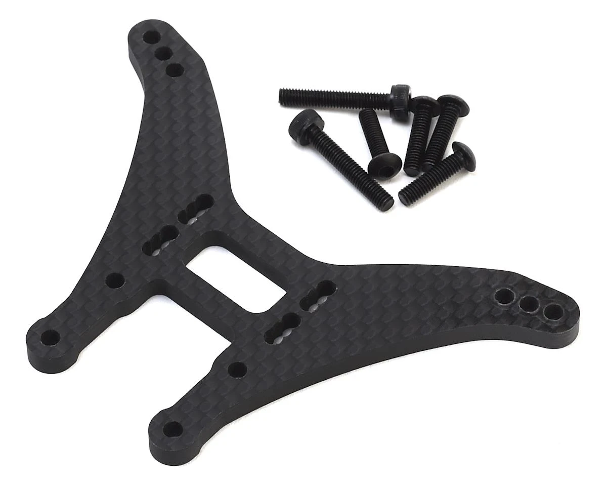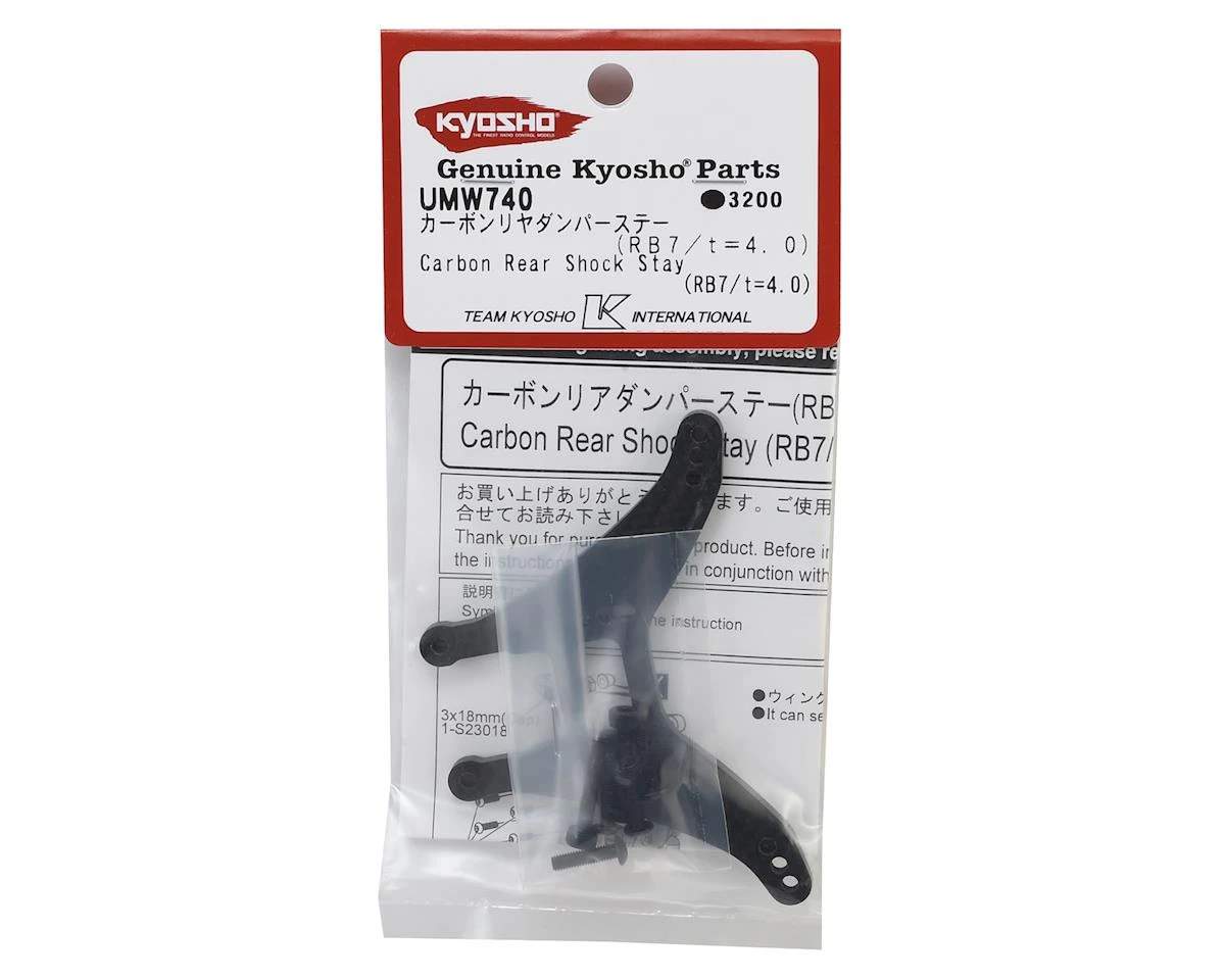 Kyosho RB7 Carbon Rear Shock Stay. Package includes one replacement shock tower and hardware.