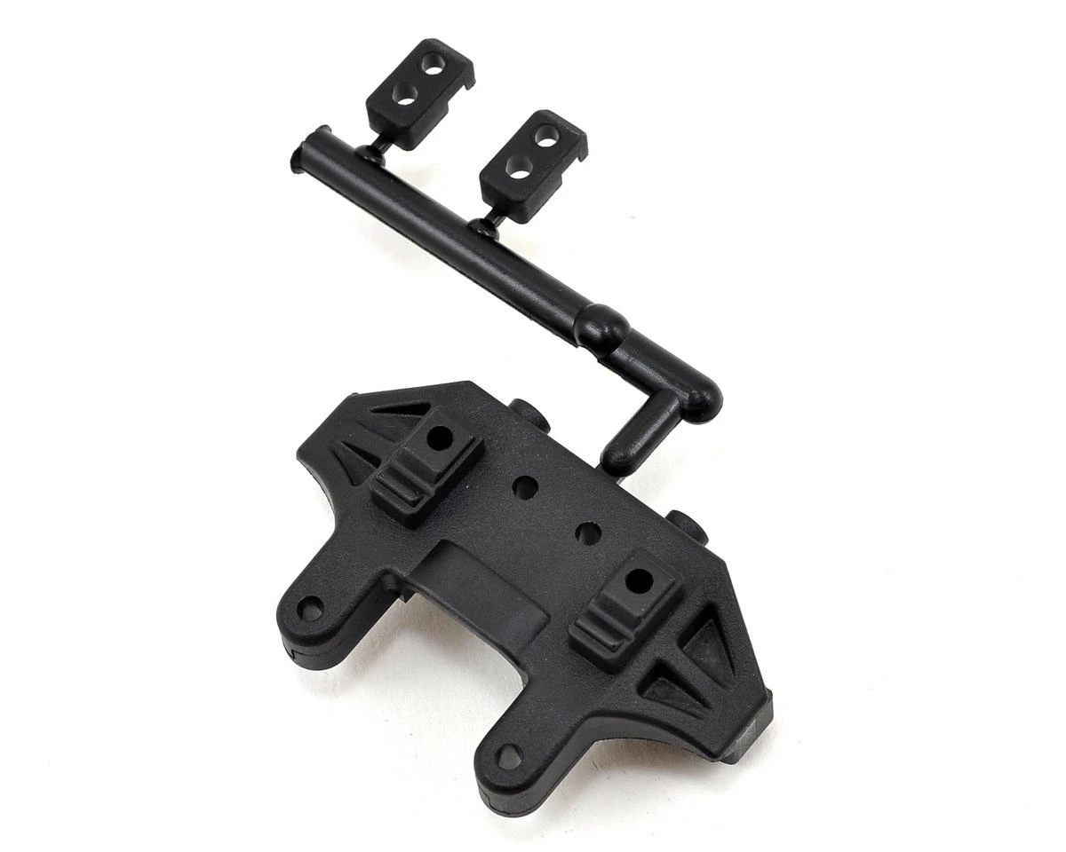 This is a replacement Kyosho Mid Motor Rear Bulk Head, and is intended for use with the Kyosho RB6 equipped with the optional Kyosho Mid Motor Rear Stabilizer Set (KYOUMW708). This is the updated RB6 mid motor bulk head that includes a sway bar mounting point.