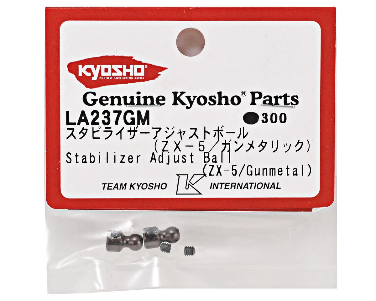 This is a replacement Kyosho Stabilizer Adjustment Ball Set, and is intended for use with the Kyosho Lazer ZX-5 vehicles. These are used to secure the sway bar to the ball ends, and replace the standard silver KYOLA237 part.