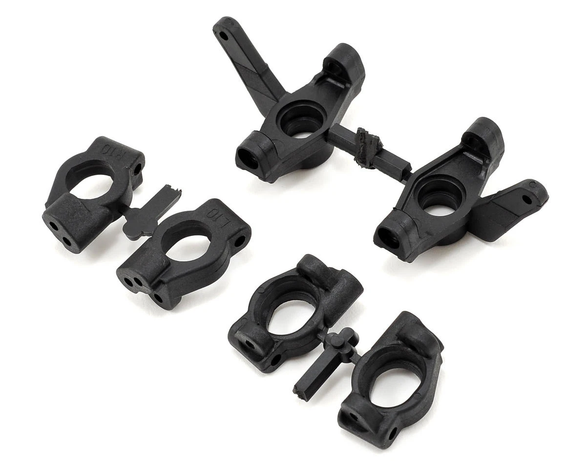 This is a replacement Kyosho Steering Knuckle & Caster Block Set. Package includes 7° and 10° caster blocks, as well as a set of steering knuckles. These are also compatible with the ZX5 series and will provide improved steering thanks to the updated steering linkage location.