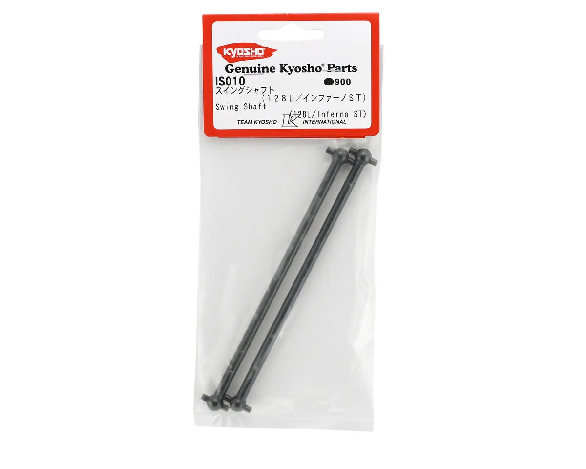 This is a set of two replacement swing shafts from Kyosho. These swing shafts go between the differential out drive, and the axles.Â