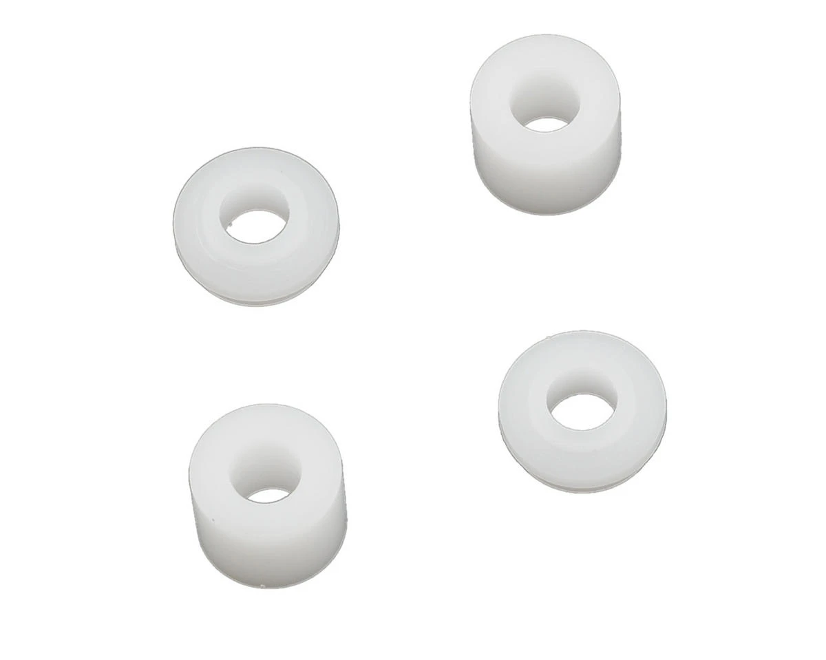 This is a set of replacement Kyosho Shock Cartridge Bushings, and are intended for use with the triple cap shocks on the Kyosho ZX5, RB5 and RT5 1/10 electric vehicles. These are the bushings that align the shaft in the cartridge as well as hold the shock seals. This package includes 2 small bushings and 2 large bushings, to replace the bushings in two shocks.