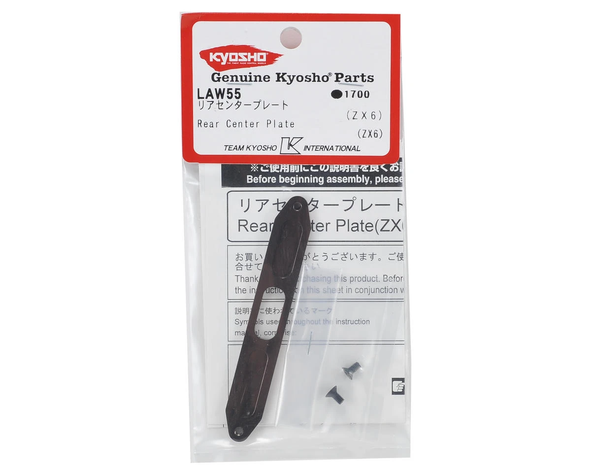 The Kyosho ZX-6 Aluminum Rear Center Plate is a machined aluminum option that is a direct replacement for the stock plastic part. This plate increases the chassis stiffness and the package includes the hardware needed for assembly.