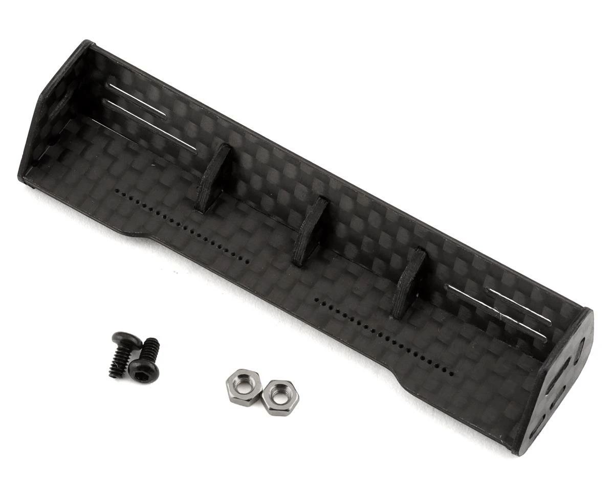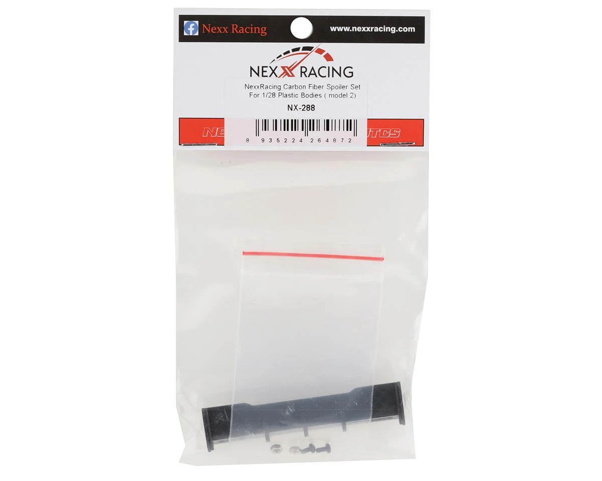 This optional Nexx Racing Carbon Fiber Spoiler Set for Mini-Z or other 1/28 scale bodies adds great detail and realism to any body you have mounted to your race chassis. Includes mounting hardware.