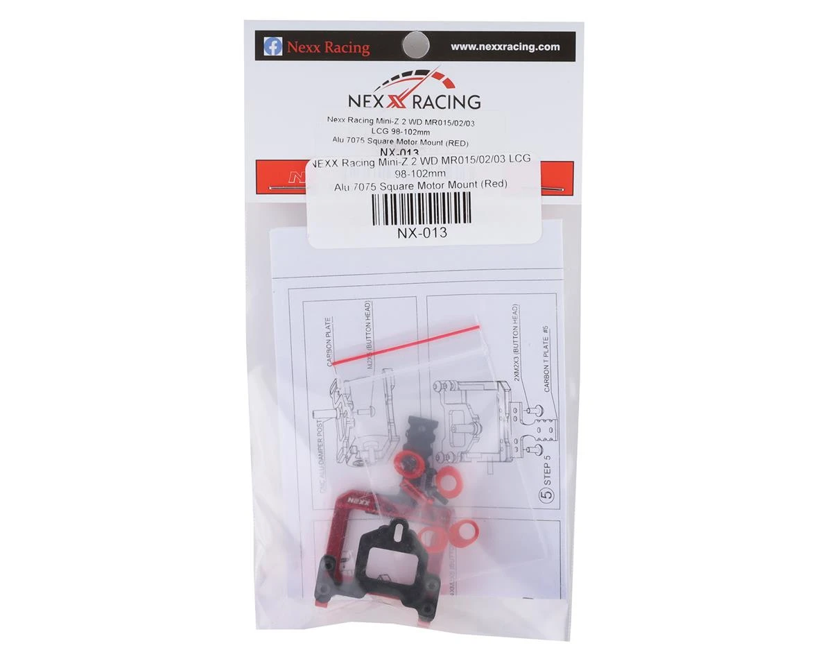 NEXX Racing Precision Aluminum Motor Mount is designed to replace stock plastic Kyosho Mini-Z motor mount. It is designed for Kyosho MR02/03 both RTR kits and EVO kits with stock square motors.