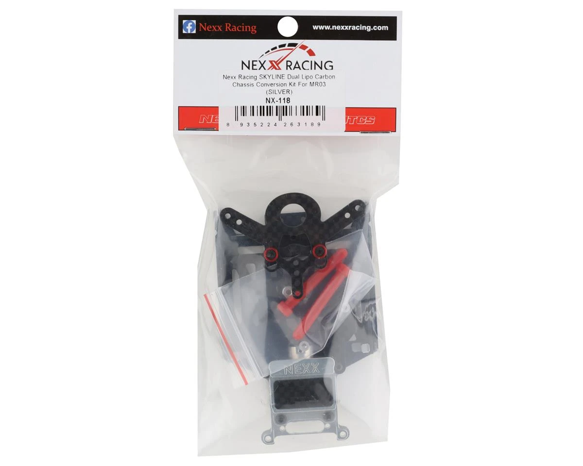 The NEXX Racing Skyline Chassis Conversion Set is ready to turbo charger your Mini-Z experience, and bring you new found speed and excitement. This conversion kit allows you to utilize all the electronics from the original Mini-Z, and converts the battery from a standard 4x AAA configuration, to a 2x 2s LiPo Battery (in parallel) for an exhilarating high performance system that offers increased power output, and increased run time.Â