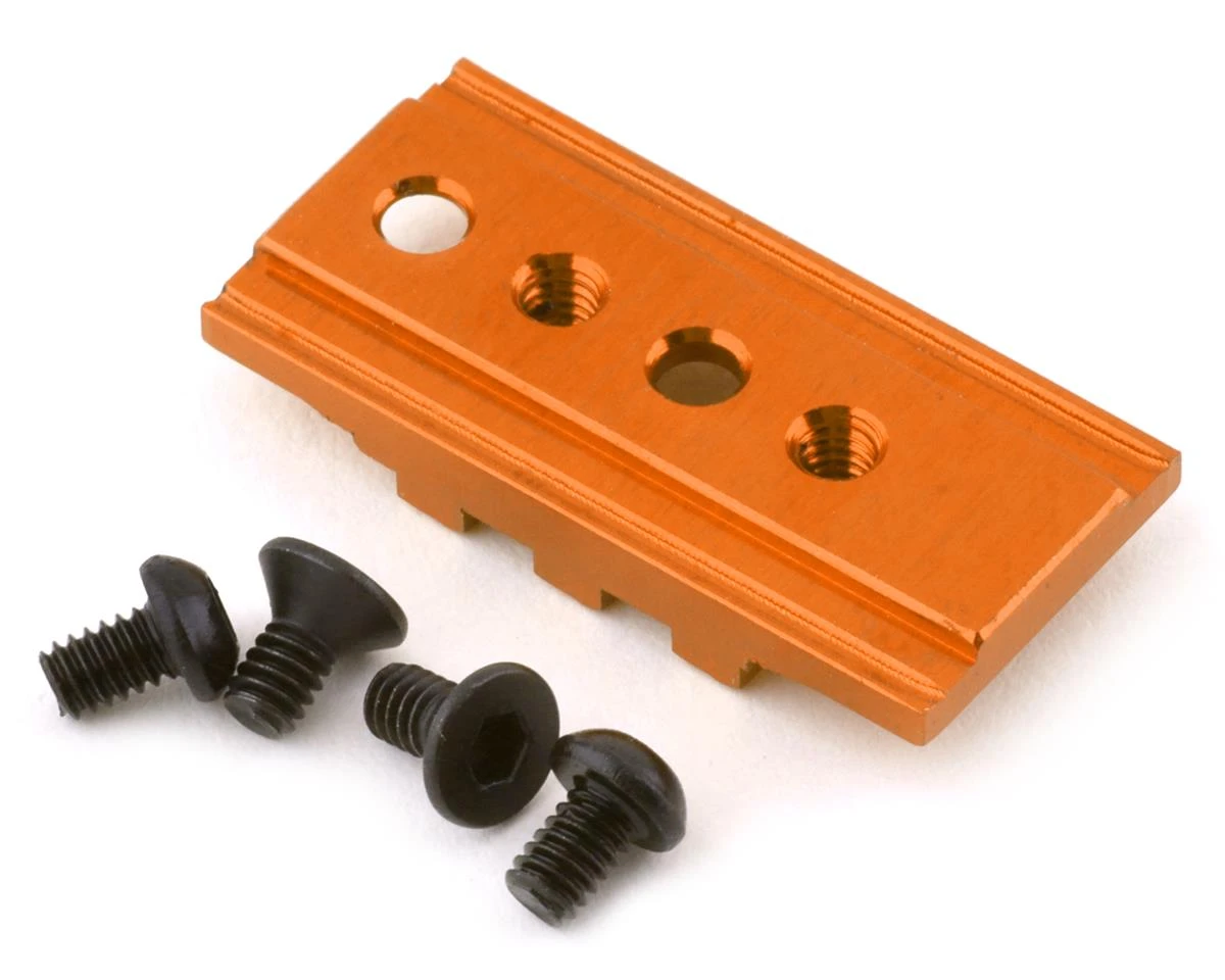 The NEXX Racing T-Plate Adapter 94-102mm For PN 2.5 is a great way to add strength and anodized color to your PN 2.5 chassis. Designed to allow for a 94-102mm wheelbase depending on instillation. Package includes one orange anodized T-plate adapter, two 2x3mm button head screws and two 2x4mm flat head screws.Â