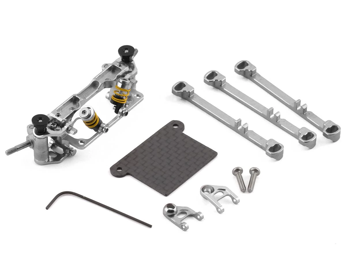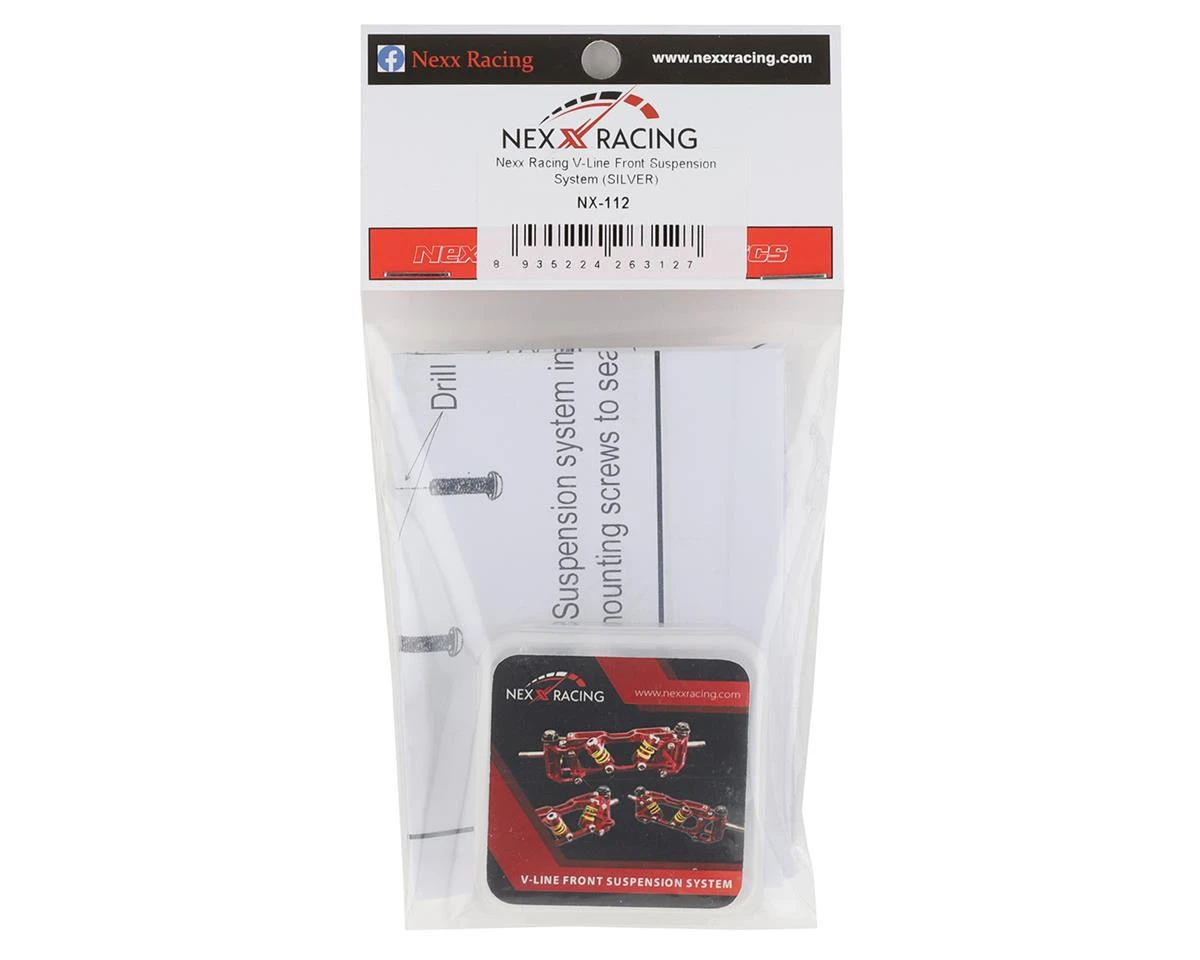 NEXX RACING V-line Front Suspension system is designed with innovative features such as, quick adjustable camber, and adjustable ride height. When installed onto your Mini-Z not only does it provide aesthetic improvements, but performance improvements as well. Performance increases are thanks to higher speeds due to improved suspension stability, and improved cornering speed. With locknuts and kingpins, V-LINE is designed to minimize most of the play resulting very smooth performance.Â