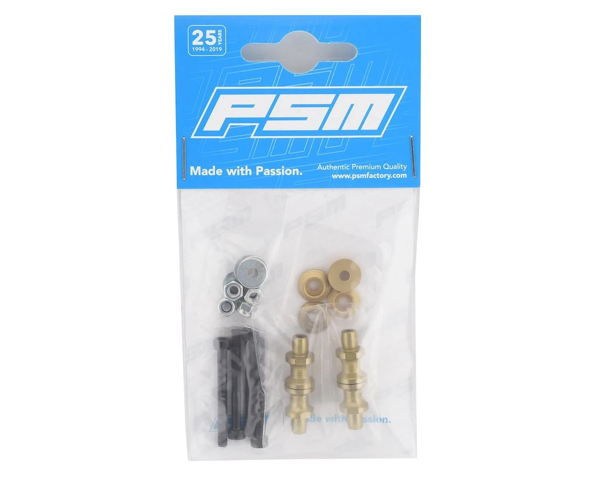 The PSM MP10 Aluminum EV2 Shock Standoff Set was designed to create a lightweight shock mount for the MP10. The unique design features the flat-width moved to the center of the standoff to provide easier access for tightening.Â