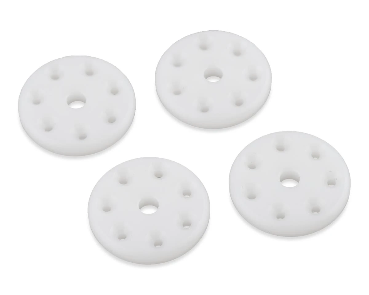 This is a set of four PSM 7×1.3mm R2T1 Pro Shock Pistons, designed as an optional part for the Kyosho MP10 1/8 Kits. These pistons feature a tapered valve hole profile that can be used to adjust compression (taper up) or rebound characteristics (taper down). Plus, PSM machines these pistons with an edge-radius on both sides, helping to reduce friction on the shock body, for ultra smooth compression and rebound characteristics.Â