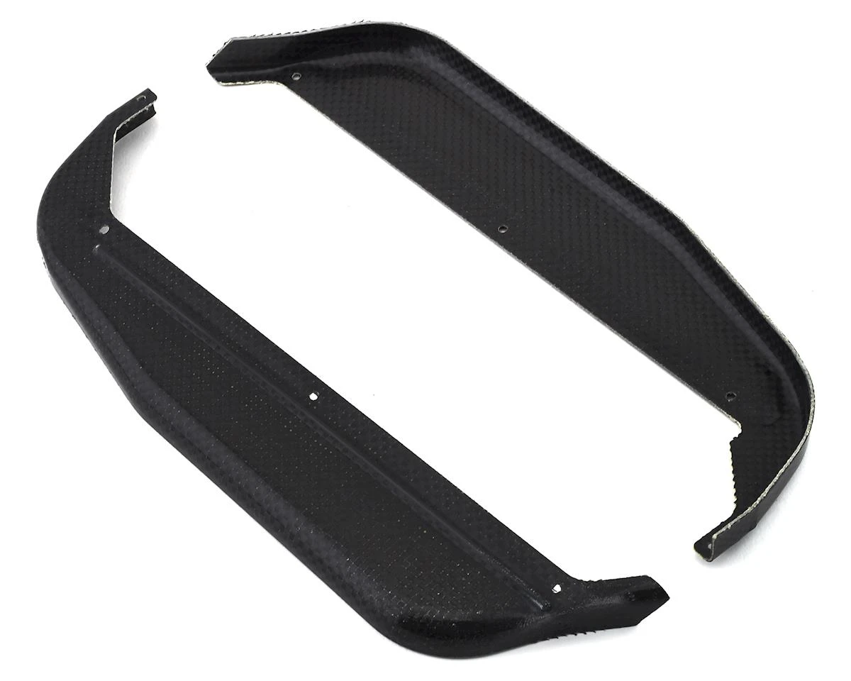 The Ruddog MP10 Carbon Fiber Side Guard Set is a high quality molded carbon fiber chassis side guard set that offers low weight, a high-quality surface finish and a custom look. These side guards help to improve performance as the side guards weigh considerably less than the standard composite plastic side pods. Being made of tough carbon fiber the side guards retain the original flex characteristics of the chassis while offering slightly increased ground clearance during cornering. Package includes left and right side, side guards and installation hardware.
